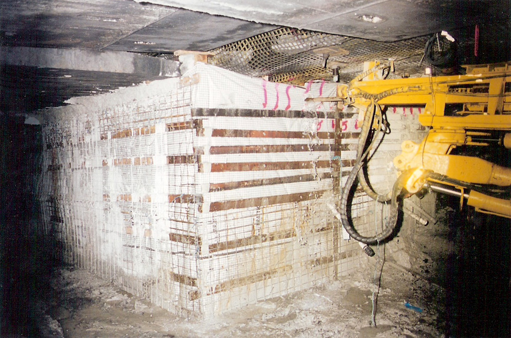 lightweight concrete is a frequent option, being cheap and relatively easy to handle. A high strength material is not required, the main purpose being confinement of strata